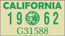 1962 Year Sticker on California License Plate